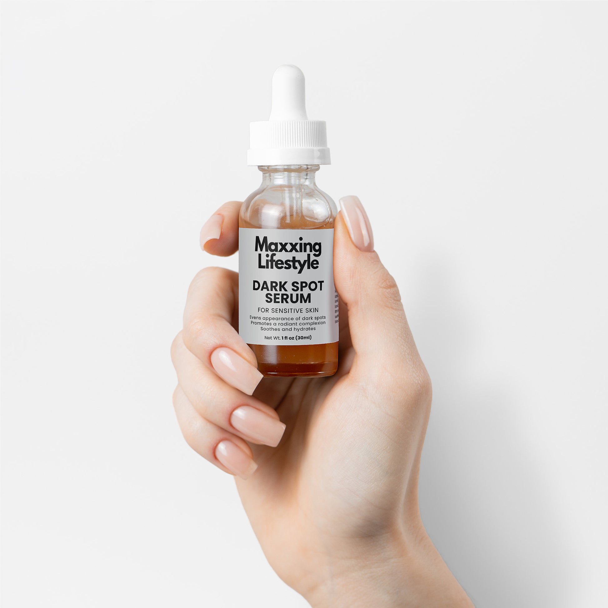Introducing our Dark Spot Serum, designed for sensitive skin. Hydration sets the stage for targeted dark spot reduction. Natural extracts work together to brighten and even skin tone while providing soothing repair.